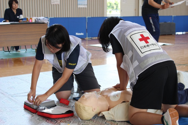 内容:心肺停止状態で倒れている人を発見してから、救急隊に引き継ぐまでの手順の適切さを競いました。