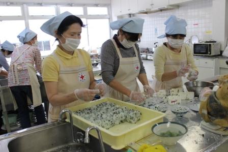 また、阿武町赤十字奉仕団による炊出し訓練も実施され、訓練終了後に地域の皆さんに配られました。