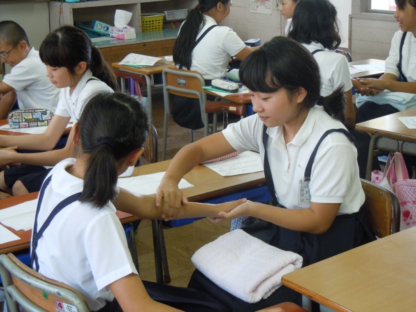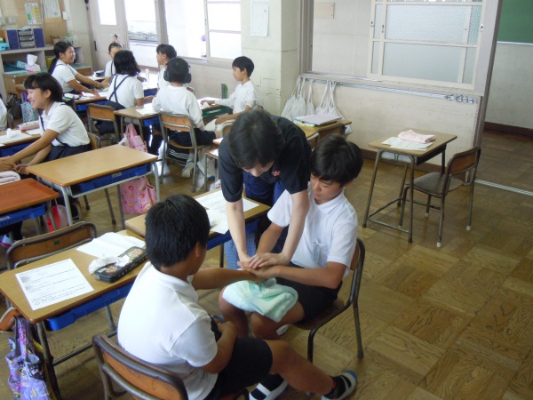 湯田小JRC委員会メンバーが「癒しのハンドケア」講習を受講しました