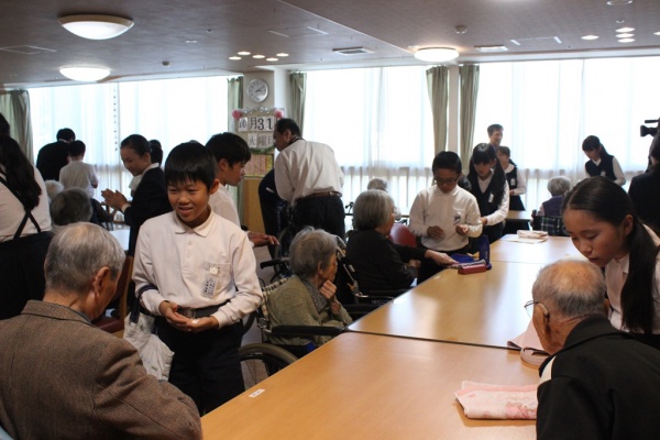 湯田小JRC委員会メンバーが高齢者の方々へ「癒しのハンドケア」をプレゼントしました