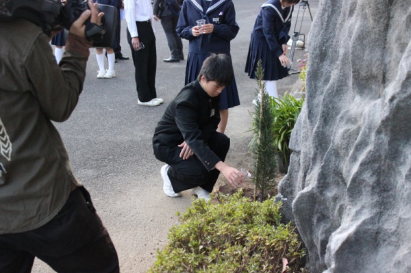 平成29年11月6日、美祢市立於福中学校にて赤十字・青少年赤十字のシンボルツリー「イトスギ」の植樹を行いました。