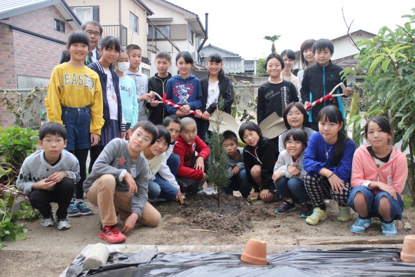平成29年11月7日、山口市立大殿小学校にて赤十字・青少年赤十字のシンボルツリー「イトスギ」の植樹を行いました。