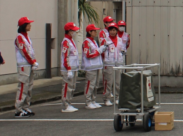 訓練に参加した医師・看護師・薬剤師・事務職員などは、普段は異なる職場で業務内容も様々ですが、災害時には日赤救護班として同じ班で活動します。