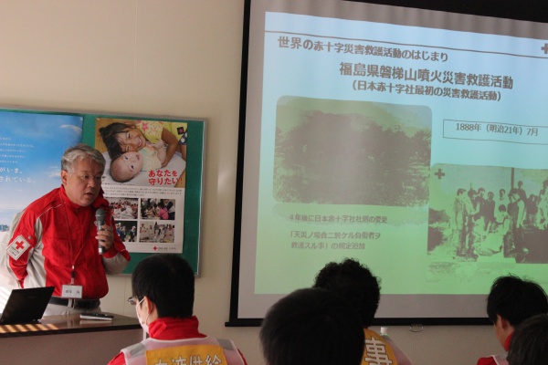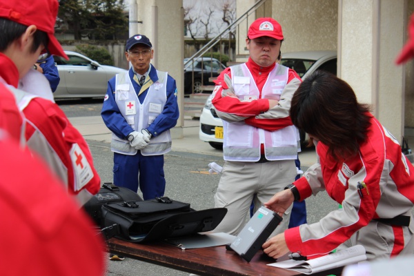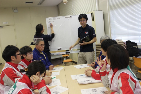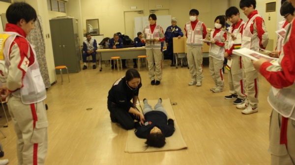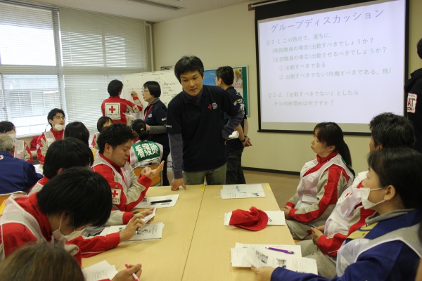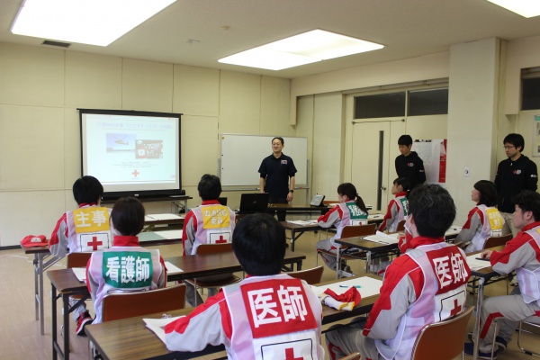 救護班(医師1名・看護師長1名、看護師2名・事務職2名)における各職種の役割、また救護活動内容について学びました。