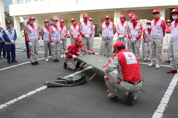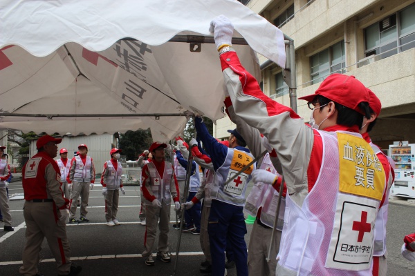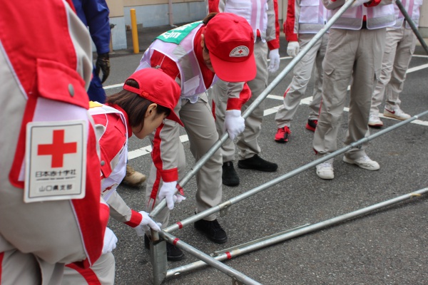 日本赤十字社山口県支部では、頻発する自然災害だけでなく、大規模災害などの人為災害に備えて、救護訓練・研修を計画的に行っています。