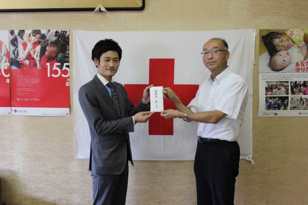 7月31日、株式会社エムラ(防府市)様が、県内5店舗、約150名の社員から募った144,000円を義援金としてお寄せくださいました。