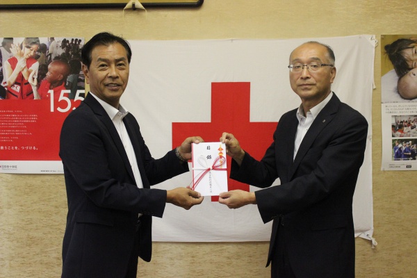西京銀行は日ごろから赤十字サポーターとして、日赤県支部の活動資金や広報などの協力をしてくださっていますが、この度は県内外43支店に7月中旬から末にかけて、被災府県への支援を呼び掛けられました。