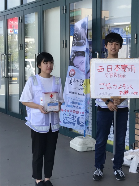 平成30年7月豪雨災害の被災者のために、学生ボランティア団体(山口大学学生赤十字奉仕団・山口県立大学学生赤十字奉仕団)がそれぞれ募金活動を行いました。