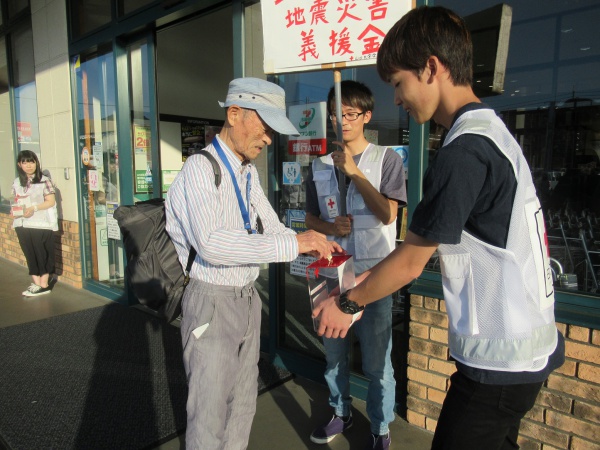 平成30年9月25日、「平成30年北海道胆振東部地震災害」の被災者のために、山口大学学生赤十字奉仕団4名と支部職員が、アルク葵店(山口市)前にて募金活動を行いました。