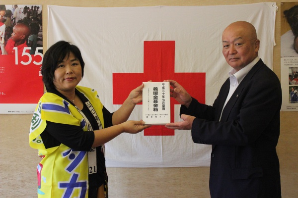 9月28日、一般社団法人山口県レンタカー協会青年部代表幹事の石光教子(いしみつ みちこ)様が、「平成30年7月大雨災害義援金」79,457円をお持ちくださいました。