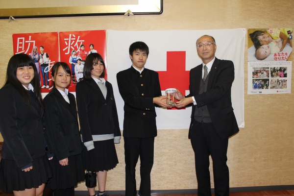 平成30年11月26日(月)、山口高校徳佐分校の生徒会・保健体育委員のみなさんが、「平成30年7月大雨災害義援金」として、5,000円をお持ちくださいました。