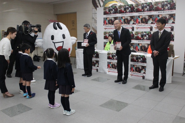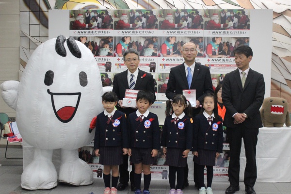 平成30年12月1日(土)、「NHK海外たすけあい」キャンペーン初日に、NHK山口放送局(山口市)のエントランスにおいて海外たすけあい・歳末たすけあいのオープニングセレモニーを行い、ご協力を呼びかけました。