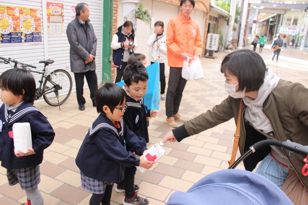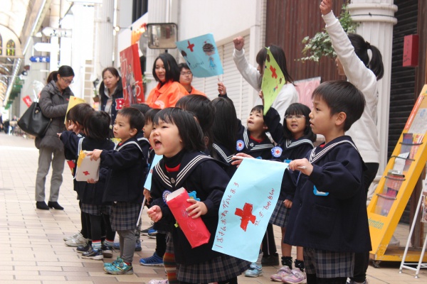 JRC加盟園の野田学園幼稚園の園児32名が、海外たすけあい街頭募金を行いました!