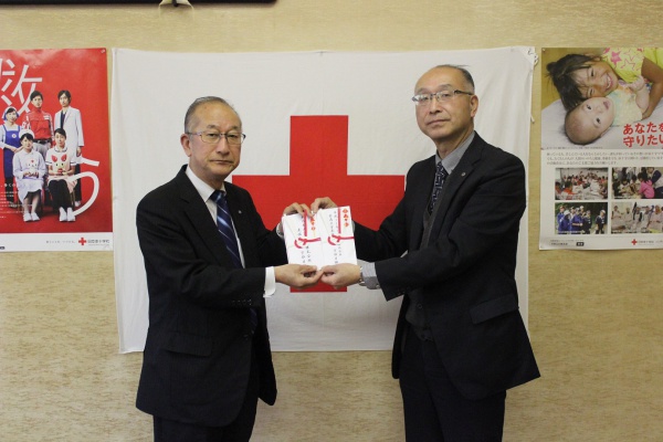 平成31年4月2日、宇部日報社様が、第26回目となる「東日本大震災義援金」90,000円と、第8回目となる「平成30年7月大雨災害義援金」348,460円をお持ちくださいました。