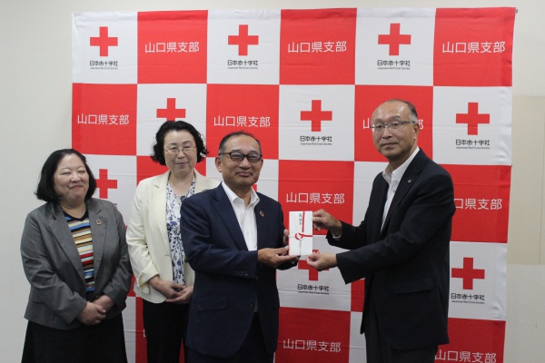 令和元年10月7日(月)、赤十字サポーターである生活協同組合コープやまぐち様より、岡崎 悟理事長、福浪 美紀常任理事、倉益 佐由美組合員理事?が来社され、「令和元年台風15号千葉県災害義援金」として20万円をを届けてくださいました。