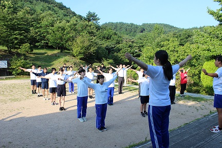 朝はラジオ体操からスタート。規則正しい生活を送ります。