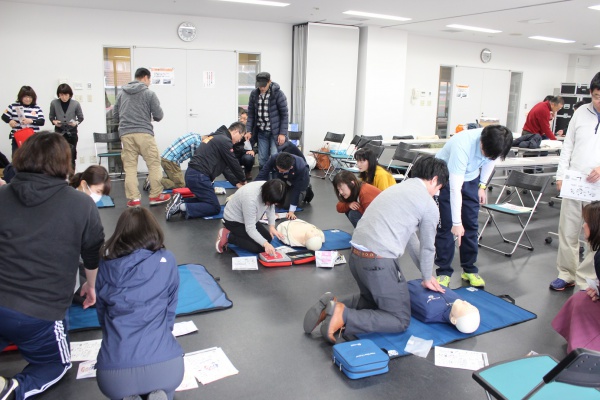 令和2年2月2日(日)、維新みらいふスタジアム(山口市)会議室で、パートナーシップ協定を締結しているプロサッカーチーム、レノファ山口の公認ボランティア「Team BONDS」とレノファ山口のチームスタッフを対象に、3回目となる救急法講習会を開催し、24名が参加されました。