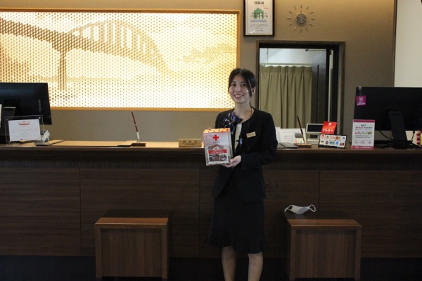 国民宿舎大城様におかれましては、平成28年のグランドオープンから、日赤活動資金を募集する募金箱を設置いただいております。