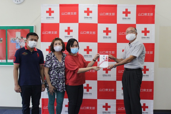 令和2年9月2日、県内在住のフィリピン人グループ、「ジャピノイ・コミュニティ・イン・ヤマグチ」様から3名が来局され、「令和2年7月豪雨災害義援金」として、62,121円をご寄託されました。