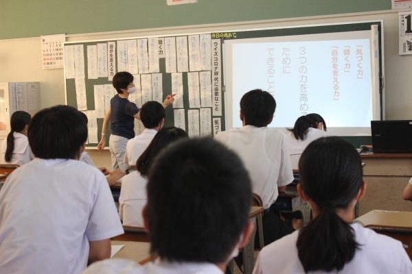 令和2年9月15日、宇部市立上宇部中学校で、日赤が作成した教材「新型コロナウイルスの3つの顔を知ろう!」を使った授業が行われました。