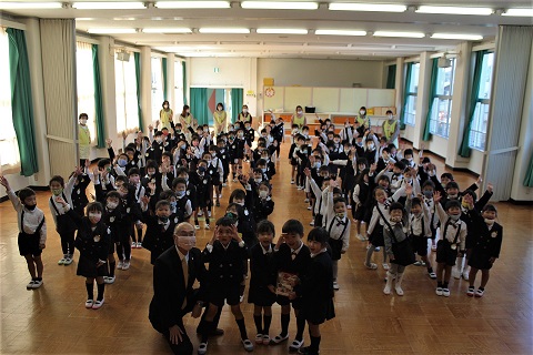 令和2年12月1日、学校法人藤村学園旭幼稚園(山口市)にて、海外たすけあいのオープニングセレモニーを行い、募金活動への協力を呼びかけました。