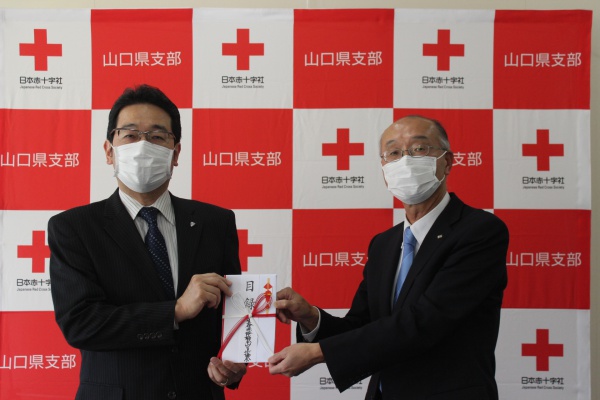 赤十字サポーターの生命保険協会山口県協会様から、日赤活動資金をお寄せいただきました