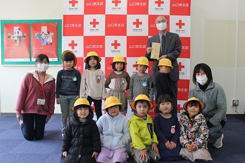 令和2年12月23日(水)、山口市の明星幼稚園の園児10名(先生2名)が、「令和2年7月豪雨災害義援金」として15,567円届けてくださいました。