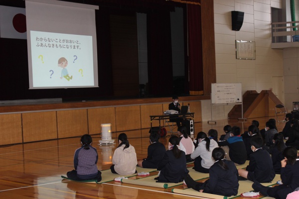 講演を聞いた児童からは、「知り合いや家族が感染しても、優しい言葉で接したい。」「マスクや手洗い、うがいを徹底したい」といった感想がありました。