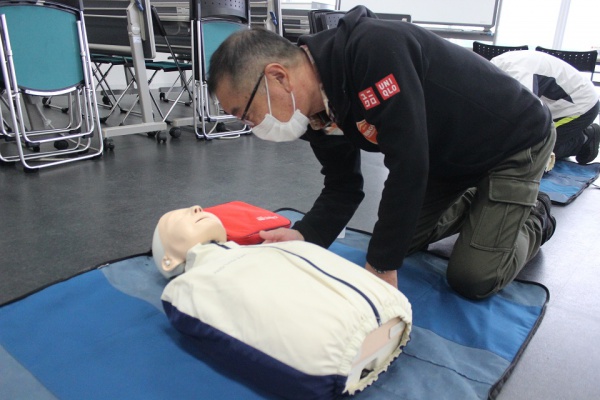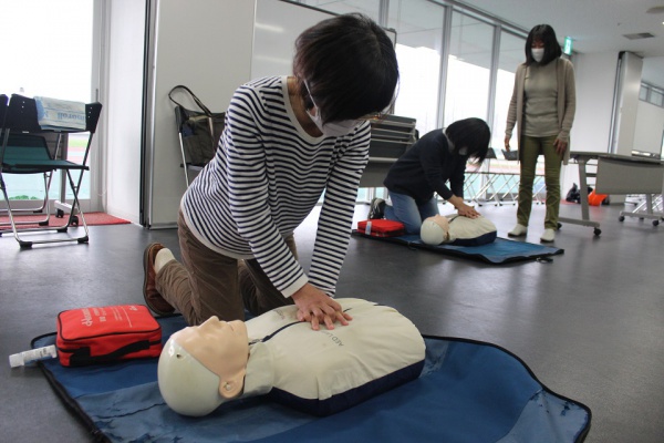 毎年この講習を受講している参加者からは、「日ごろからAEDの設置場所を確認することの大切さや、年1回でもAEDの使い方に慣れる機会があり大変助かる」といった感想があり、「感染症対策で人工呼吸を控えた場合は、気道確保が必要なのか」といった質問もありました。