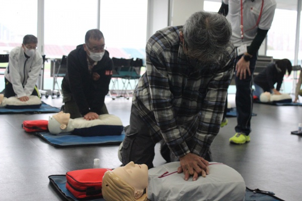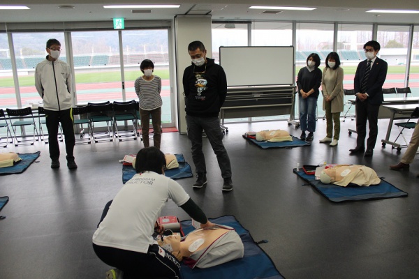 (1)レノファ山口チームスタッフ、ボランティアスタッフを対象とした赤十字救急法講習を開催