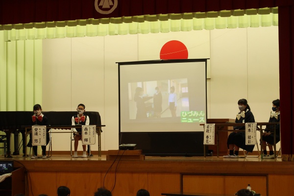 また、学校保健委員会では、この参観日に備えて「ひづみんニュース」という劇をつくり、校内での感染対策の徹底、差別を生まないことなどを下級生たちに分かりやすく訴えておられました。
