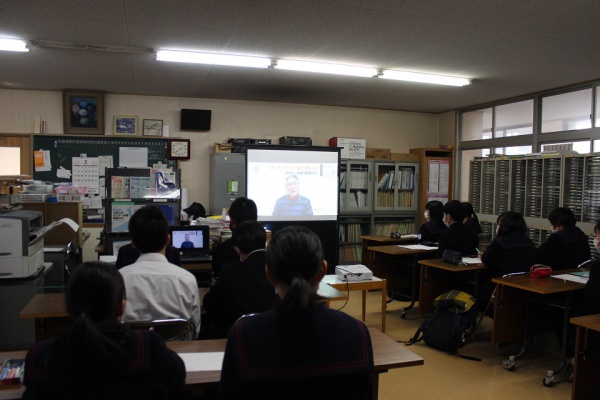 14時からは萩高校に戻り、JRC部17名が日赤宮城県支部主催の「東日本大震災10年・オンライン語り部企画」に参加しました。