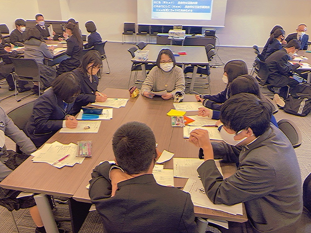 令和3年12月18日(土)、KDDI山口維新ホールにて、今年度2回目となるリーダーシップ・トレーニングセンター(以下「トレセン」)を実施し、第1回目の参加者と役員メンバーが加わり、総勢7校・21名が参加しました。
