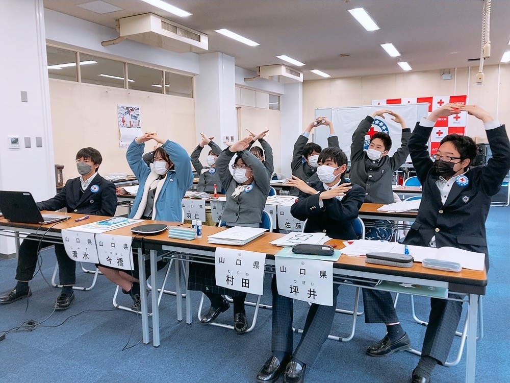 令和3年12月25・26日の二日間に渡り日赤本社がオンラインにより開催した「令和3年度青少年赤十字スタディ・プログラム」に、全国から中学生63名、高校生244名(計307名)が、オンライン上で集い、当県からは、県鴻城高等学校JRC部員10名と、山口市立小郡小学校JRCメンバー(生徒会)7名が参加しました。