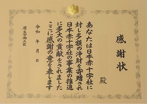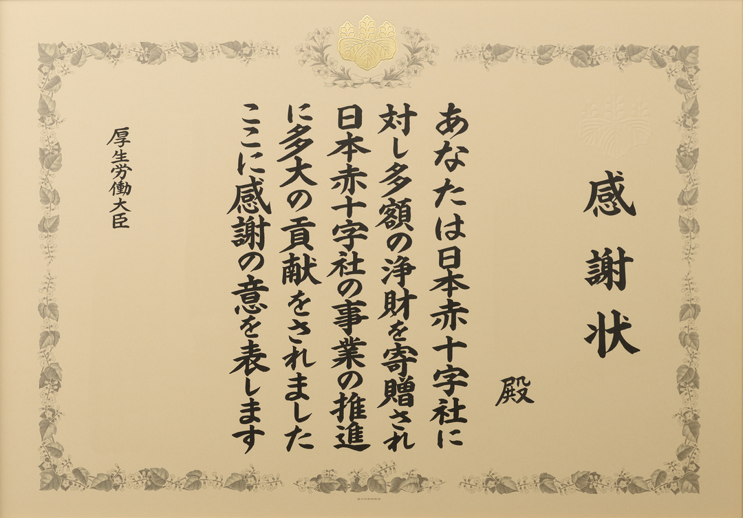 赤十字活動資金に多額のご協力をいただいた場合は、次のとおり表彰制度を設けております。
