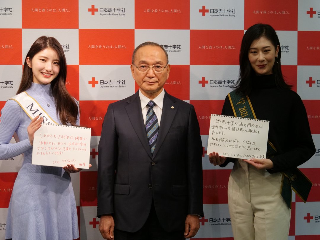 11月17日(木)、2021ミス・ジャパン小山麻菜さん、2021ミス・アース・ジャパン吉田小夏さんが日本赤十字社にお越しになりました。