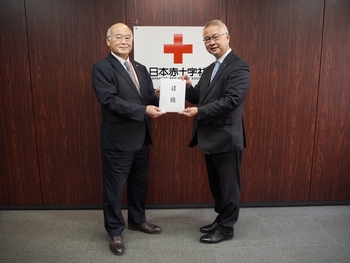 今回のご寄付は、同社の株主優待リーフレットにおいて赤十字への支援を呼び掛けていただき実現したものです。