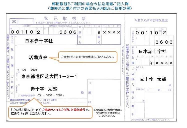 口座名義:日本赤十字社(ニホンセキジュウジシャ)