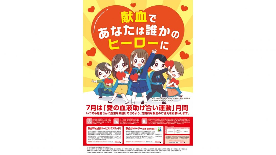 病気やけがなどで輸血を必要としている患者さんの尊い生命を救うため、日本赤十字社では、16~69歳まで※の健康な方に献血のご協力をお願いしています。