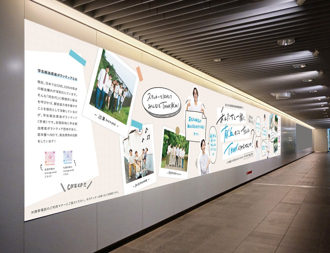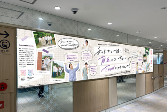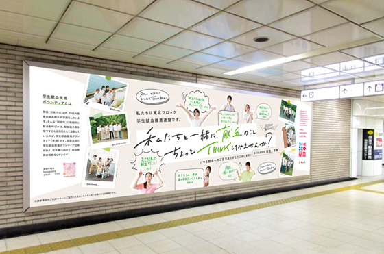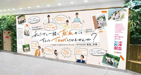 全国学生献血推進実行委員会の皆さんのご協力を得て、「私たちと一緒に、献血のことちょっとTHINKしてみませんか?」というコピーで献血へのご理解・ご協力を呼びかけます。
