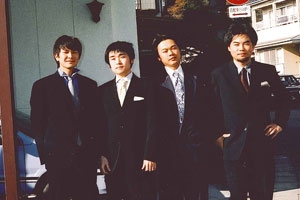 (Photo: This photo was taken outside Tomokazu Sato's house in Otsuchi, when he and his friends were 18; now, he recounts that two of the young men in the picture have lost close relatives in the tsunami, while the third was himself killed in a car accident eight years ago and his grave has been washed away.)