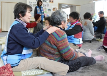 Japanese Red Cross is running psychosocial support activities such as tea parties, relaxation activities (massage and stretching) and so on. This activity aims to help particularly elderly residents get out of their homes, and build stronger community ties in order to combat loneliness and physical inactivity, which doctors warn can lead to“disuse syndrome“. (For exact location, please contact the Japanese Red Cross.)