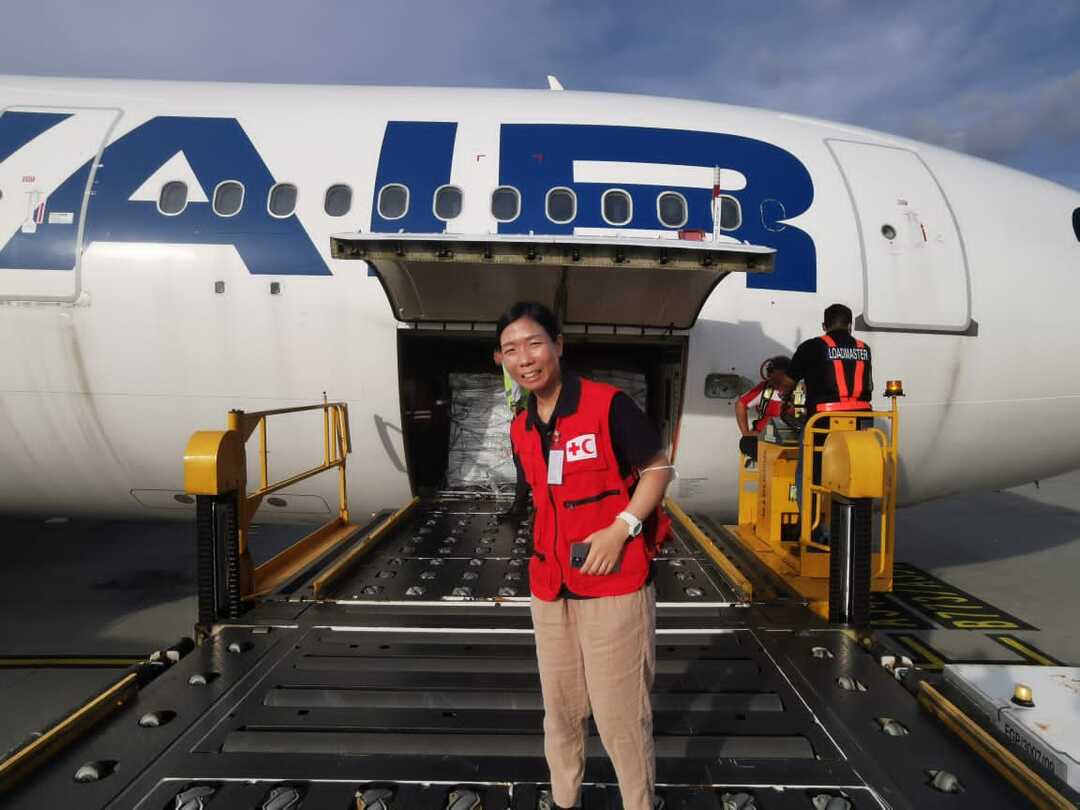 パキスタン洪水支援に対する日赤からの支援物資積込みの立ち合い(マレーシア空港)©日本赤十字社
