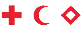 一番左が赤十字マーク。中央は主にイスラム圏で使用される赤新月マークで、赤十字マークと同様の意味を持つ。右は2005年に採択されたレッドクリスタル(邦訳未定)でこちらも同様。