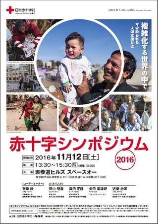 「赤十字シンポジウム2016」を来る11月12日(土)、東京・表参道で開催します。このシンポジウムは、多くの方に国際協力や人道支援への関心を寄せていただくために、日本赤十字社と日本放送協会(以下、NHK)の主催により、「海外たすけあい」募金キャンペーン*の一環として、毎年開催しています。