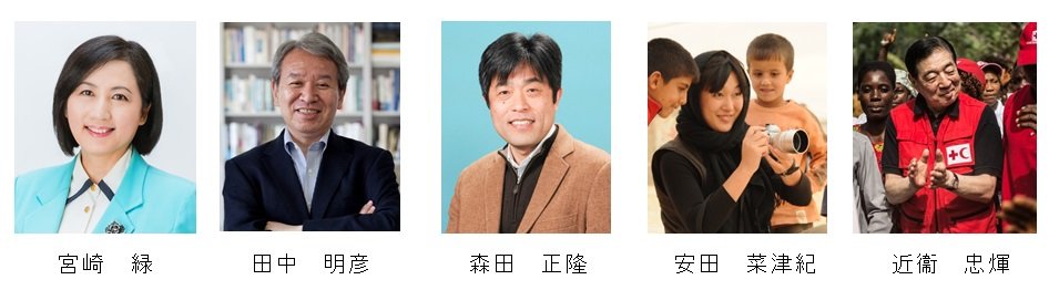 | パネリスト : | 田中 明彦(東京大学教授) 森田 正隆(明治学院大学教授) 安田 菜津紀(フォトジャーナリスト) 近衞 忠煇(日本赤十字社社長 兼 国際赤十字・新月社連盟会長) |