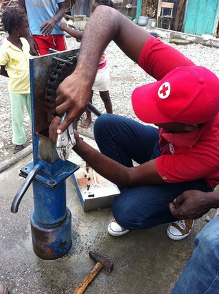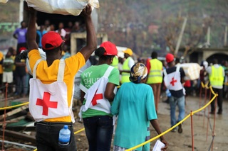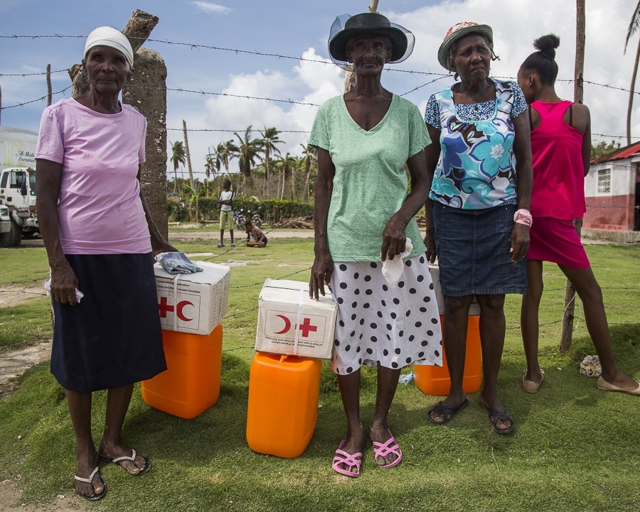 国際赤十字は、パナマより飛行機で輸送した35トンの救援物資を被災者に配布しました。ハイチ国内の陸路輸送が困難となり、首都ポルトープランスから被災地までは大型船で輸送しました。救援物資は衛生キットや家屋修繕キット、ポリタンク、防水シートなどで、南西部のジェレミーから、さらに西端のアンスデノーまで小さな船で運び、被災者への物資配布を実施しています。