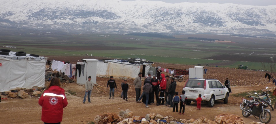 両親と一緒にシリアからレバノンの非公認難民キャンプに逃げてきました。「赤十字がトイレを建ててくれたので、とっても安心です」とファティマちゃん。「テントの周りがドロドロにならないので、外で遊べるようになってうれしい」とマフムドくん。