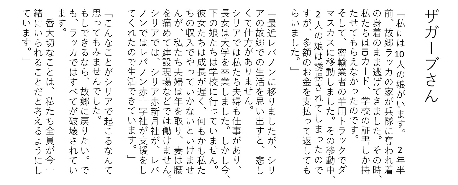 シリアにおける紛争は7年目に入りました。いまだ、終息の見えない中、人々は避難生活が長くなり、状況は悪化しています。1350万人以上の人が、支援なしには生きられない状況に追いやられ、家を失った人はいつ自分の故郷に帰ることができるのかわからない、出口の見えないトンネルの中にいます。