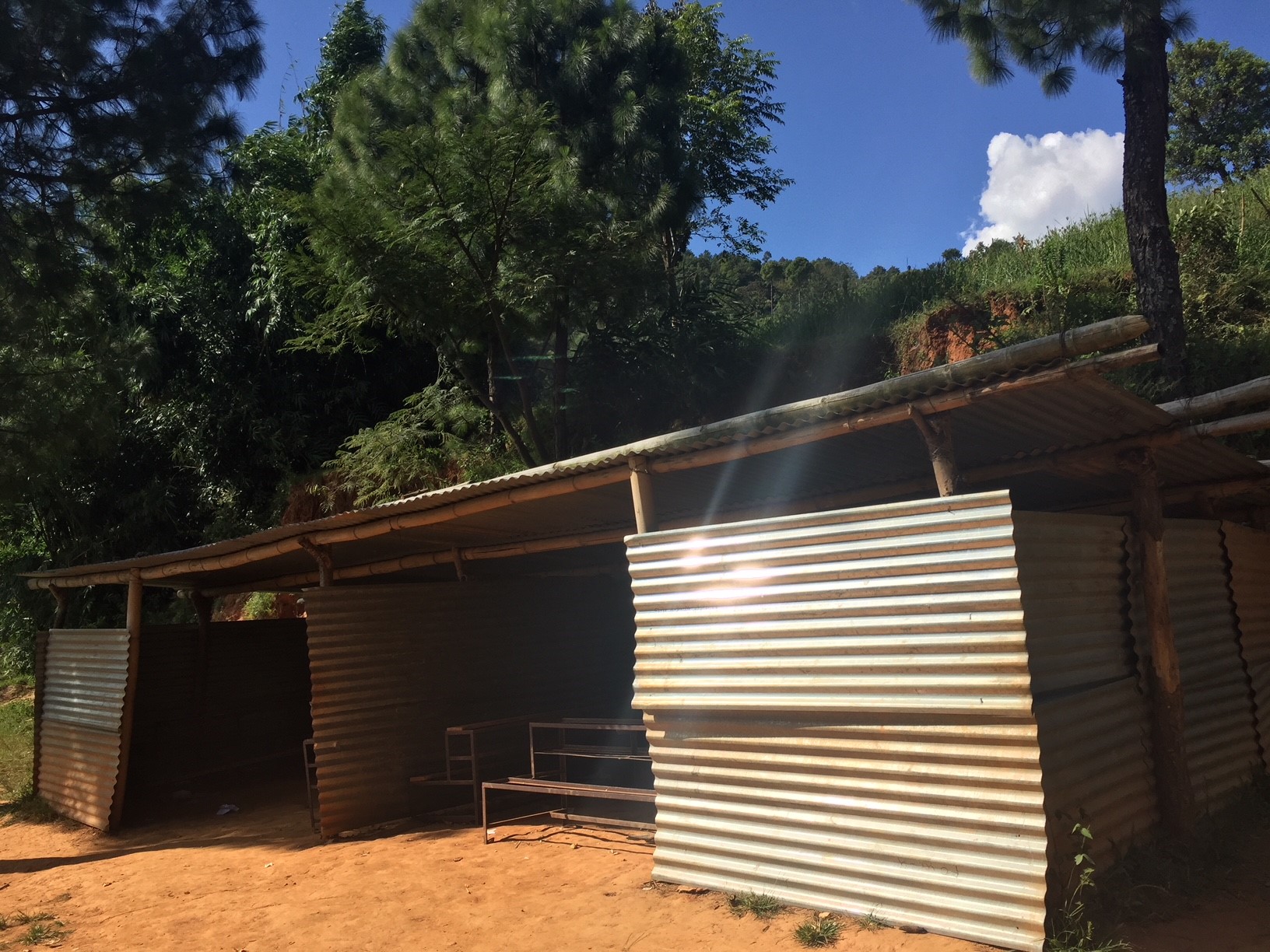 少し離れたところに位置する、もうひとつの別の仮設校舎にはトイレがあります。しかし、ふたつの仮設校舎を合わせると約100人の子どもたちが通う学校なのに、トイレの数はたったひとつ。